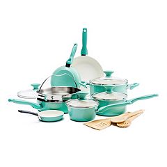 Set Includes 8 Inch And 11 Inch Ceramic Frying Pans Color Creamy White Inner And Turquoise Outer Interior Made Of Ceramic Non Stick Skillet Sets Ceramics
